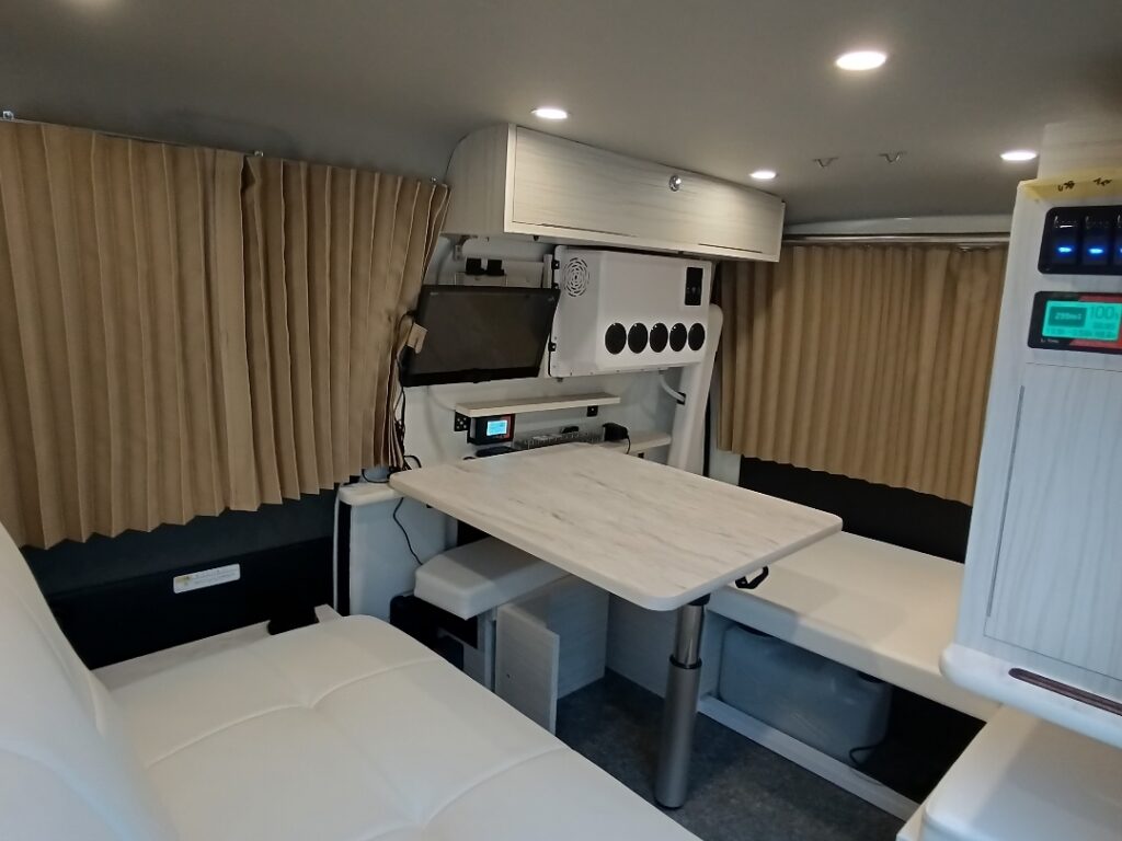内装の設計や材料の調達、装備の組み込みなどが行われます。お客様のご要望に合わせてカスタマイズを行いながら、キャンピングカーの製作が行われます。